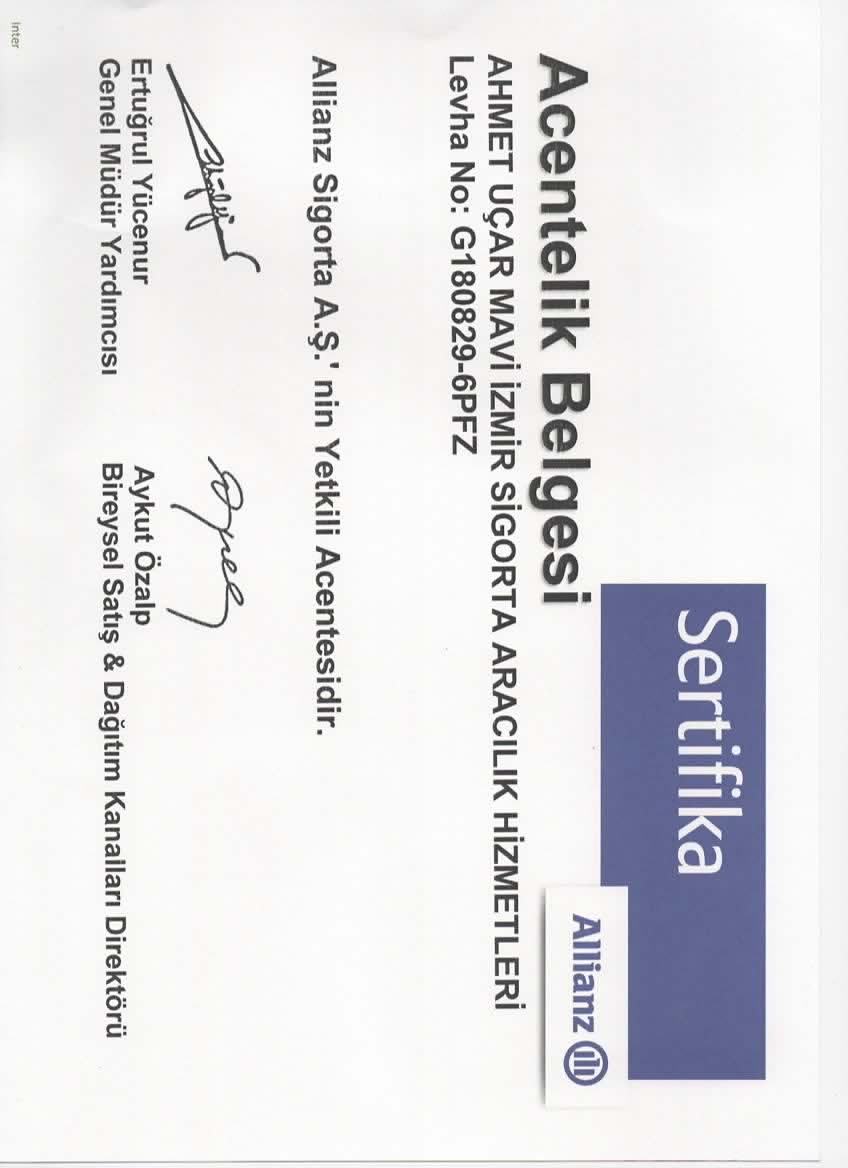 9. Allianz Sigorta Acentelik Yetki Belgesi