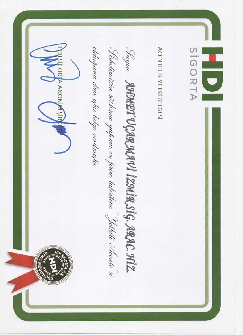 7. HDI Sigorta Acentelik Yetki Belgesi